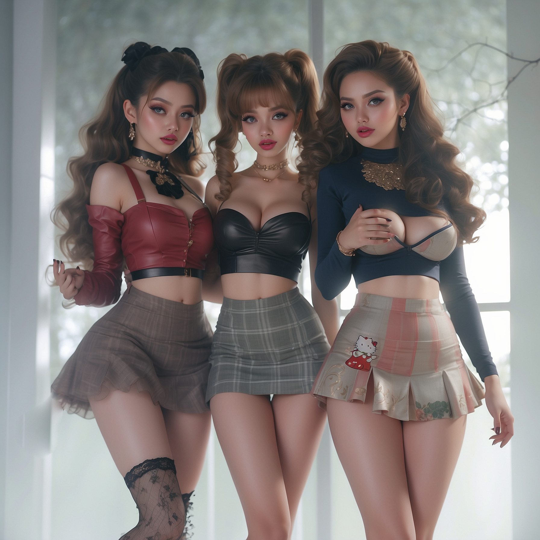 Le immagini delle modelle sexy catturano l'attenzione con la loro bellezza mozzafiato e il fascino irresistibile. Tre bellissime ragazze emergono come esempi di eleganza e stile, ognuna con il proprio unico charme. Dai loro sorrisi radiosi alle pose sensuali, queste modelle rappresentano un ideale di bellezza contemporanea, dimostrando come l'arte della fotografia e l'innovazione dell'IA possano creare rappresentazioni straordinarie e coinvolgenti. In un mondo dove la tecnologia e la bellezza si intrecciano, queste immagini celebrano la femminilità in tutte le sue forme.